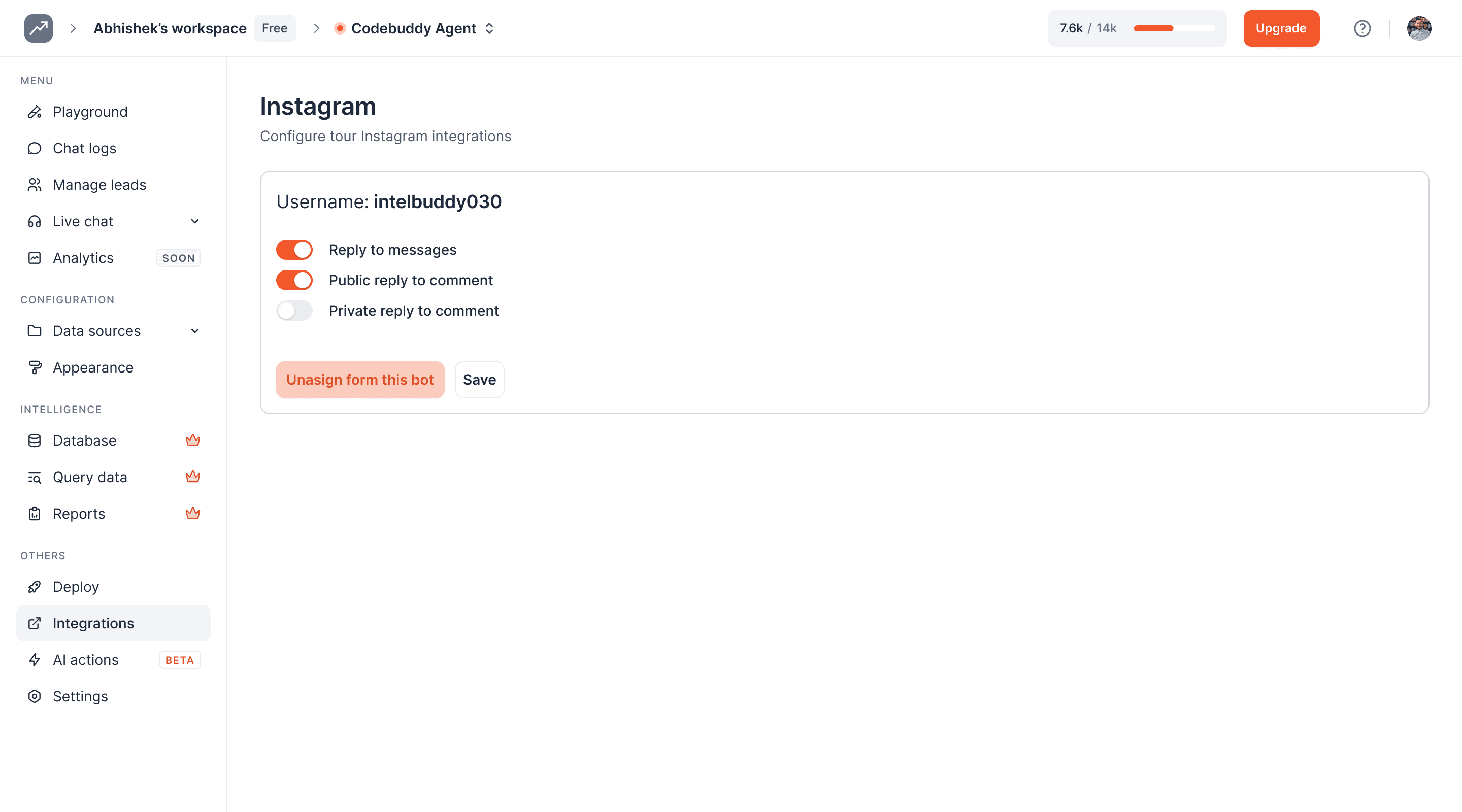 Done! 🚀 You have successfully connected your chatbot with your Instagram account; it can now reply to messages you receive