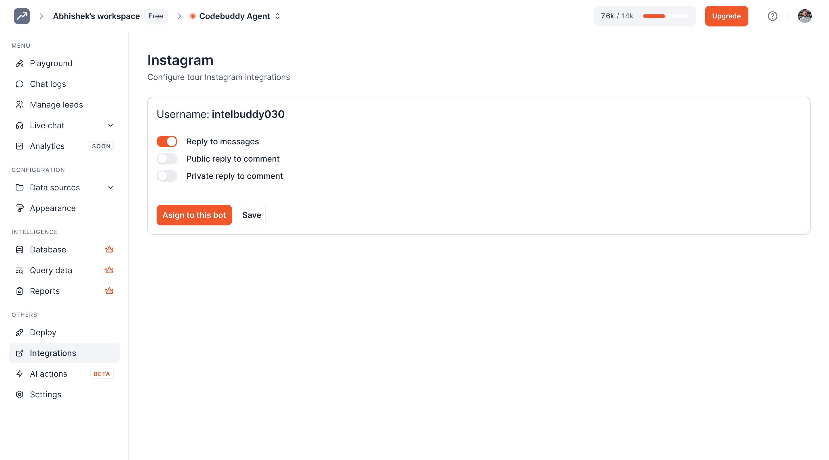 This training guide offers a step-by-step process for integrating Intelbuddy with business Instagram account. Once the chatbot is connected to Instagram, it will automatically begin responding to inquiries, enhancing customer engagement and support.