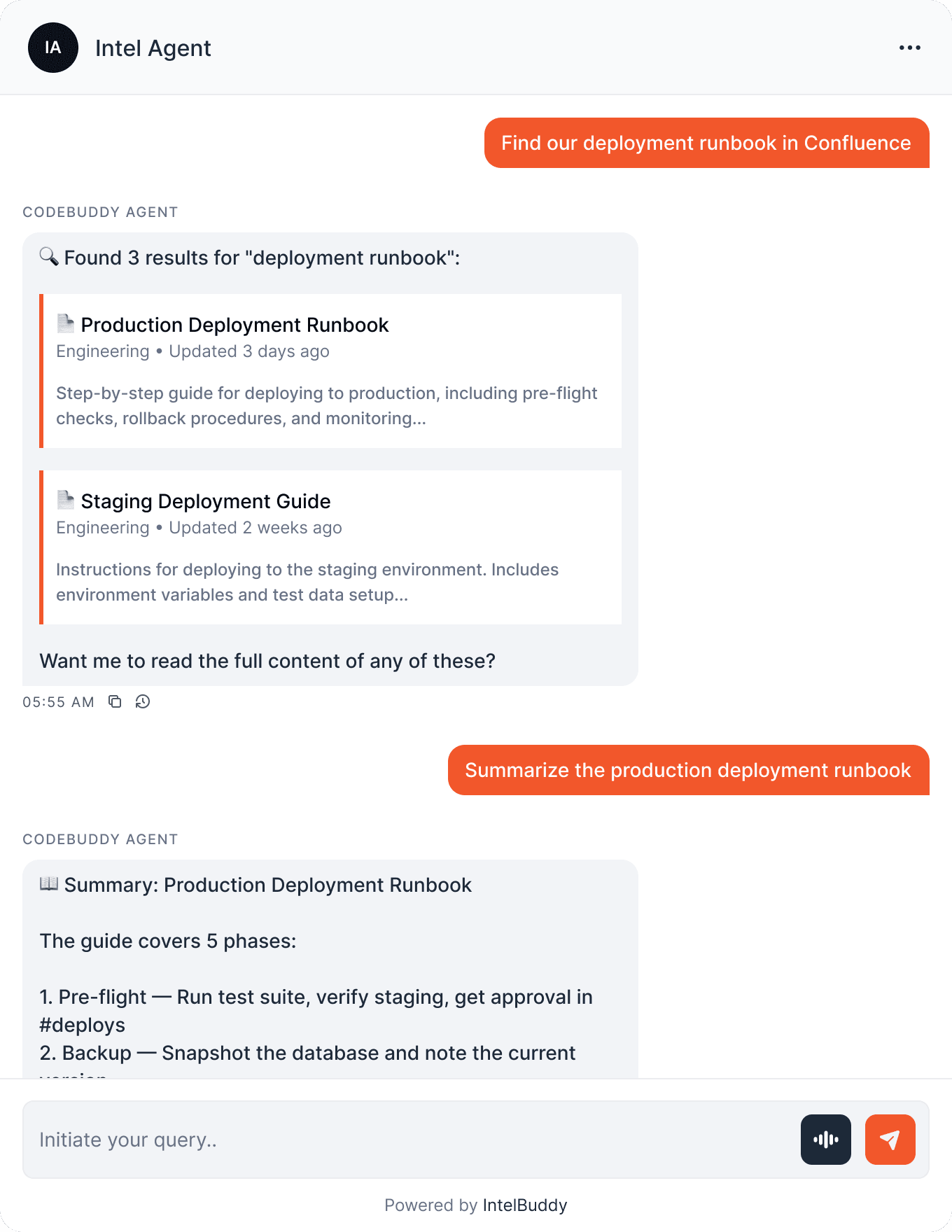 Your IntelBuddy chatbot can now search, read, create, and update Confluence pages.
