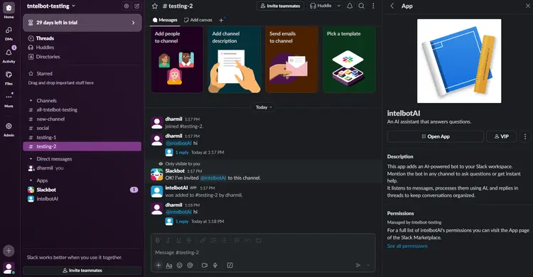 Open your Slack workspace and go to the channel where Intelbuddy want to integrate