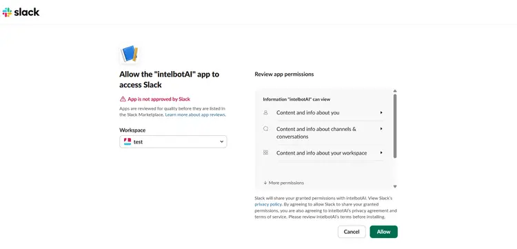 Click the 'Allow' button to authorize Intelbuddy in the workspace