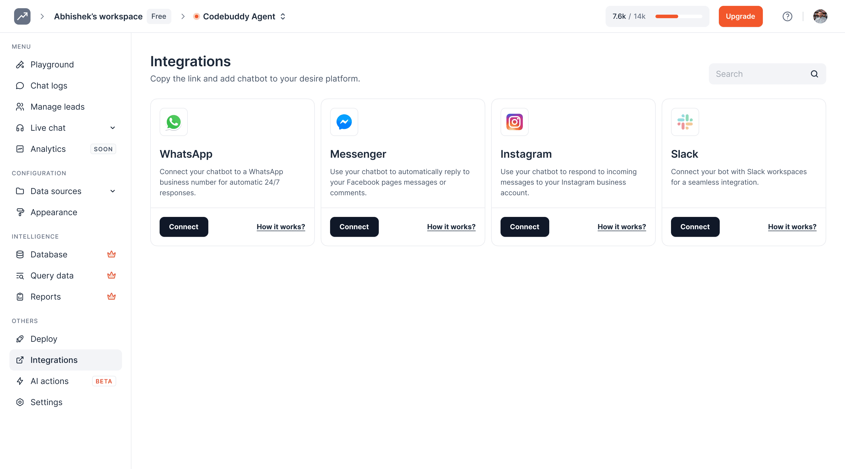 Click on 'Integrations' to open the integrations page