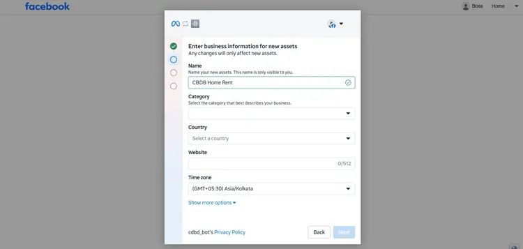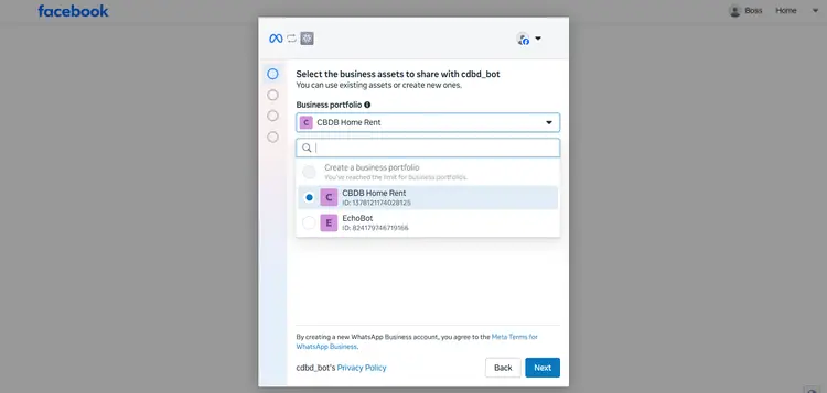 Click on the drop-down menu and select 'Create a business portfolio'