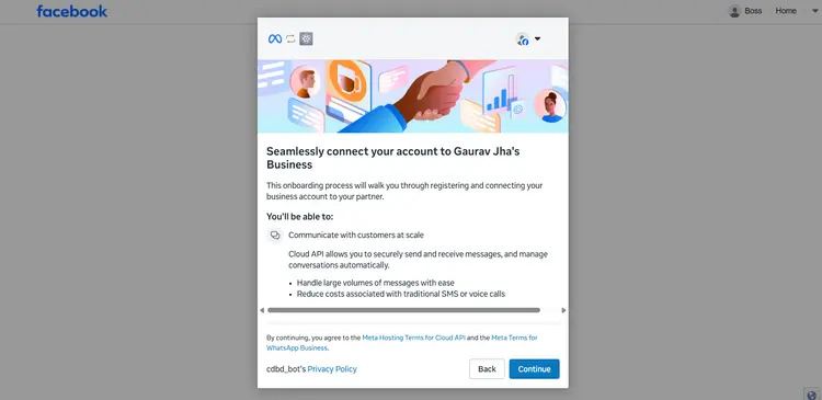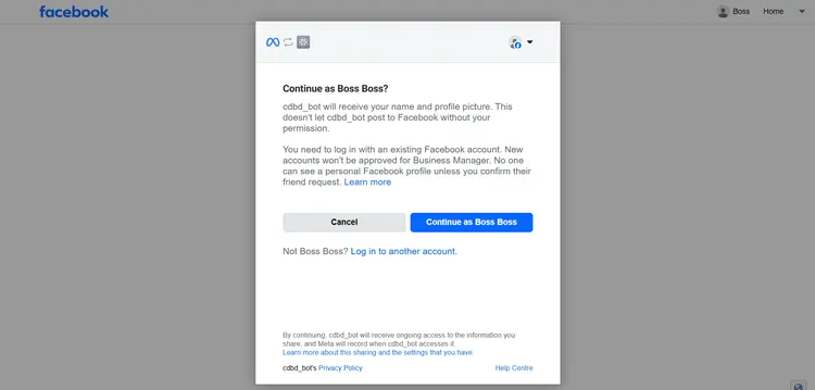 Connect your Facebook account by entering your credentials and clicking 'Continue'