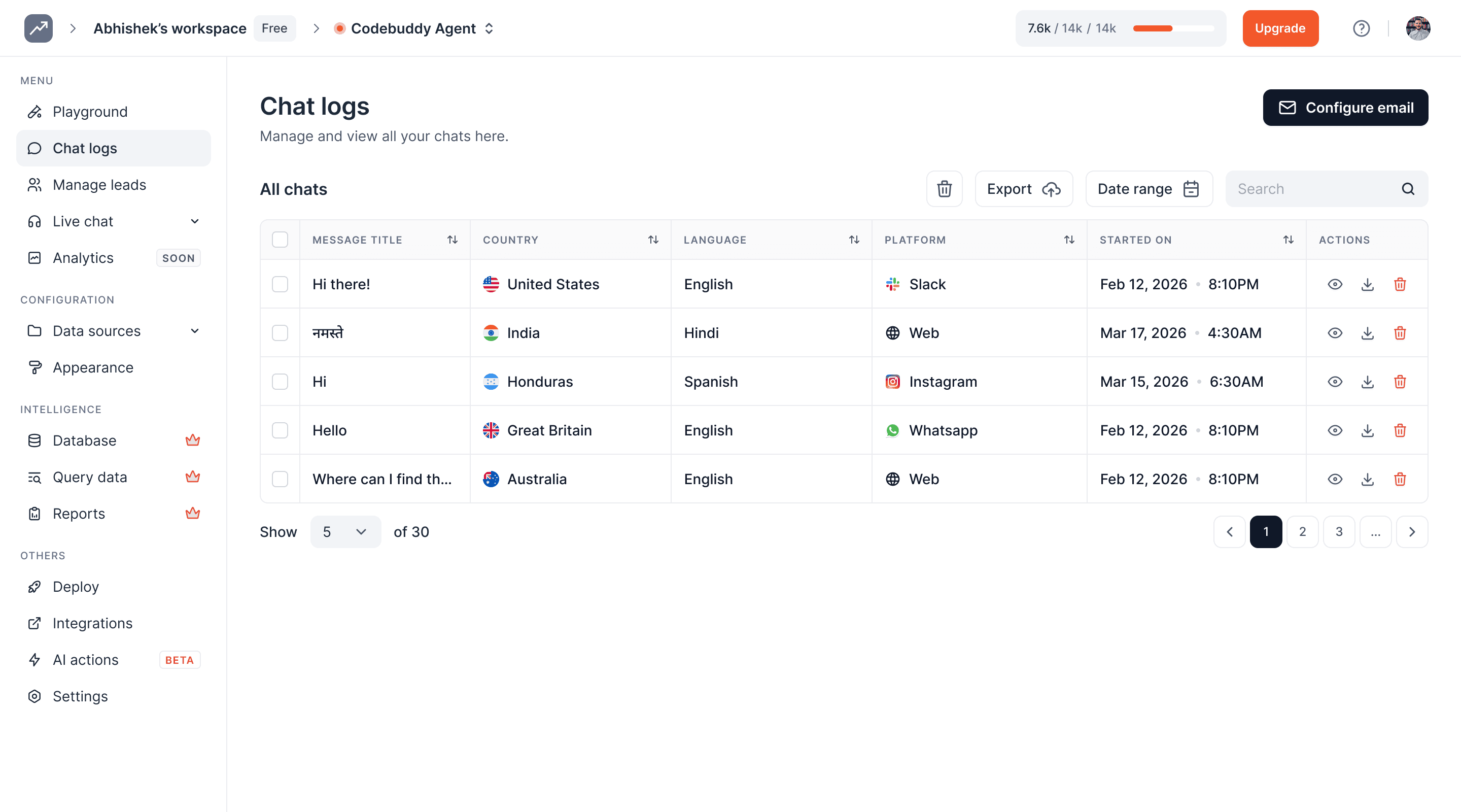 Check all conversations in your chatbot on the 'Chat History' page