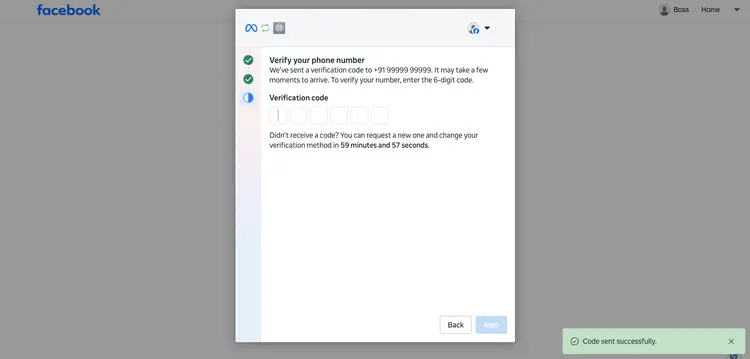 After entering the verification code, click 'Continue'