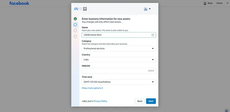 Add your website, select your country, and click 'Next'